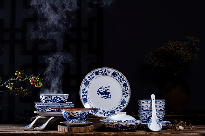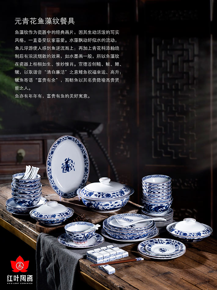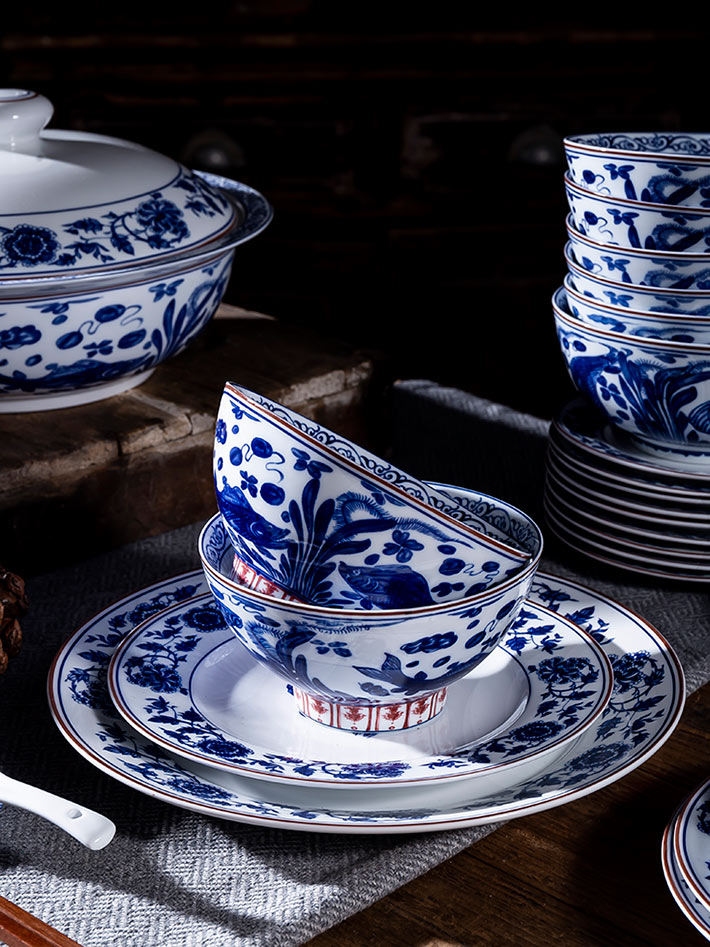 60頭元青花富貴有魚中餐具