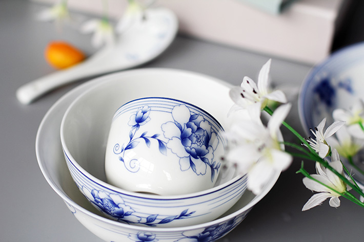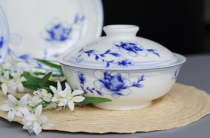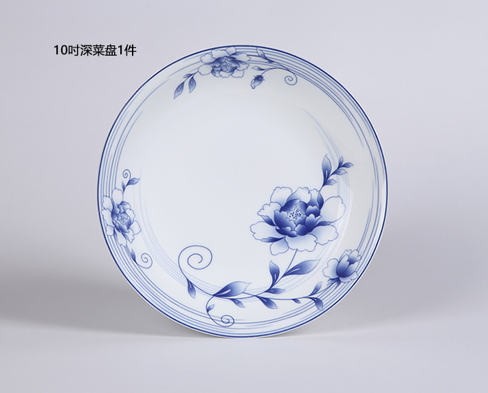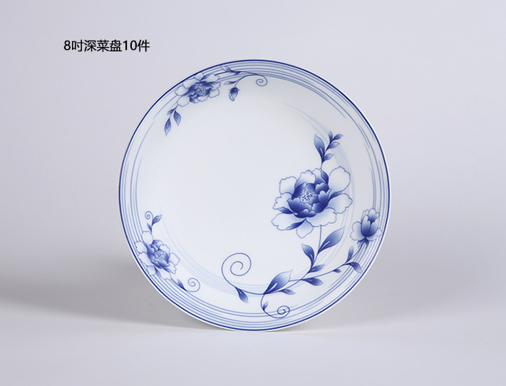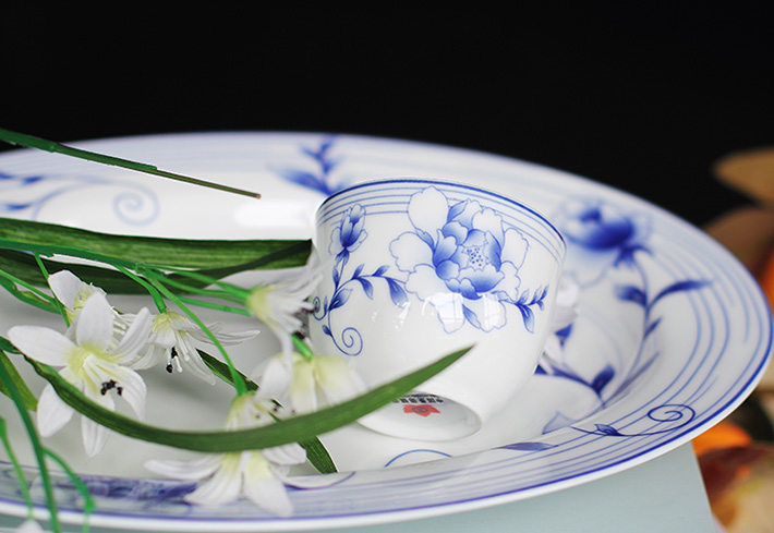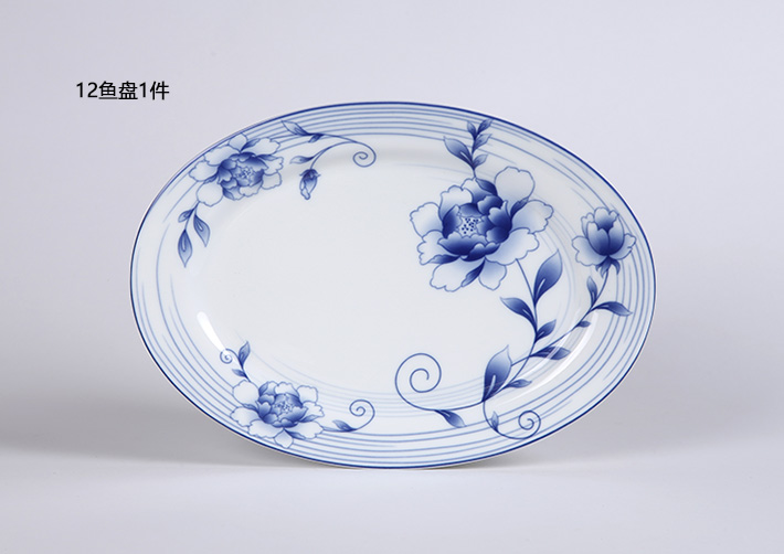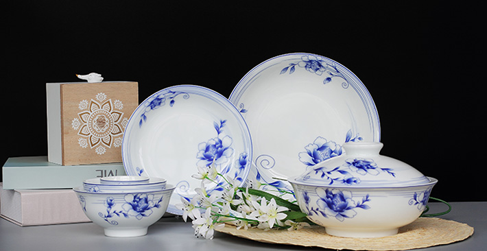 56頭青花玲瓏花卉中餐具