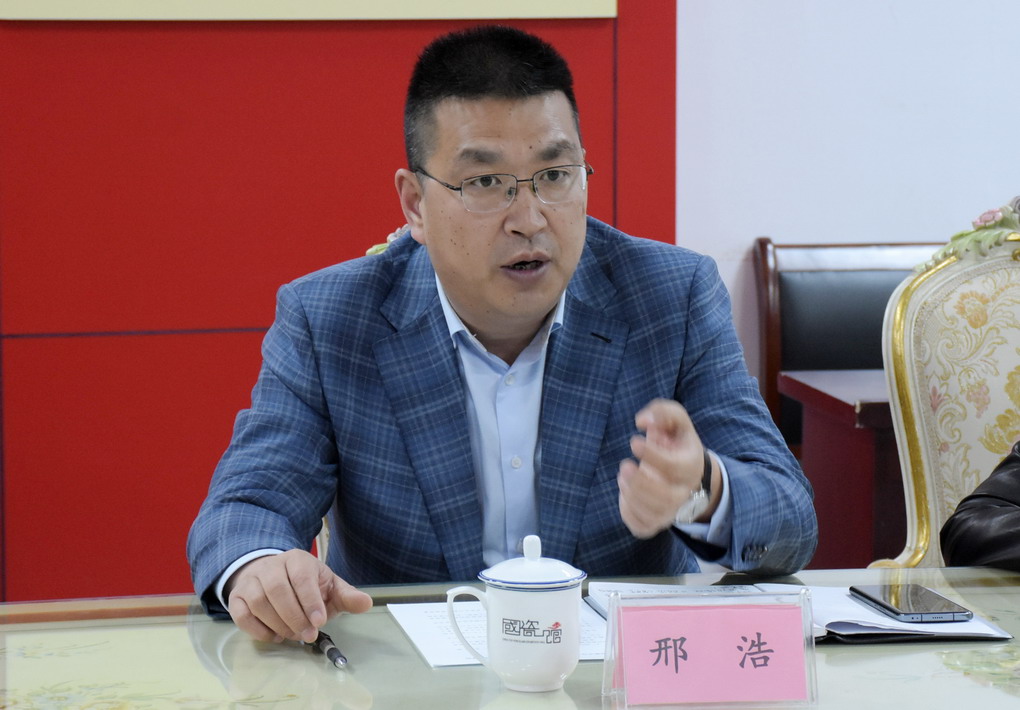 在國瓷館參觀期間,邢浩向調(diào)研組一行簡要介紹了集團(tuán)公司發(fā)展歷程。在陪同大家品鑒“紅葉陶瓷”精品時(shí),邢浩一邊講解陶瓷先進(jìn)生產(chǎn)工藝,一邊講述一套套有關(guān)“國瓷”的故事。