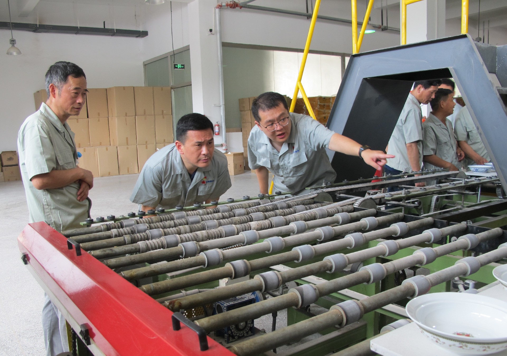 在生產車間調研中,鄧景揚先后下到各個生產工序現場,從原料、模型、成型、燒煉到彩繪車間,對每個工序都進行了詳細了解,重點了解了紅葉一廠的整體生產能力及現狀。