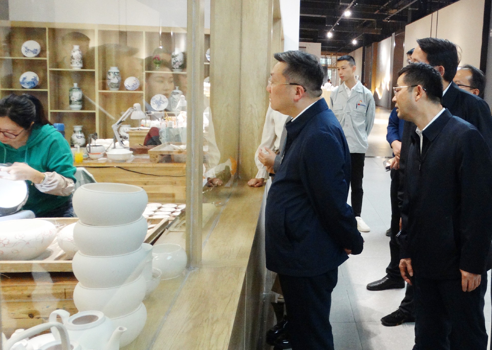 10月19日下午,長沙市委常委、宣傳部部長陳澎一行到景陶集團考察,長沙市委宣傳部分管日常工作的副部長、市新聞出版局局長周海毅,市委宣傳部部務(wù)會成員劉玉龍,馬欄山視頻文創(chuàng)園黨工委書記曾雄,望城區(qū)委常委、宣傳部部長陳曠,市委宣傳部辦公室主任陳敏,市委宣傳部政研室主任賀明明,市委宣傳部文產(chǎn)處處長王青,市委宣傳部版權(quán)處處長譚曉丹,市委宣傳部干部處處長王林平,市委宣傳部辦公室副主任劉斌,市委網(wǎng)信辦綜合處副處長韓勇隨同,景德鎮(zhèn)市委宣傳部常務(wù)副部長董軍發(fā)陪同,景陶集團黨委委員胡軼接待。